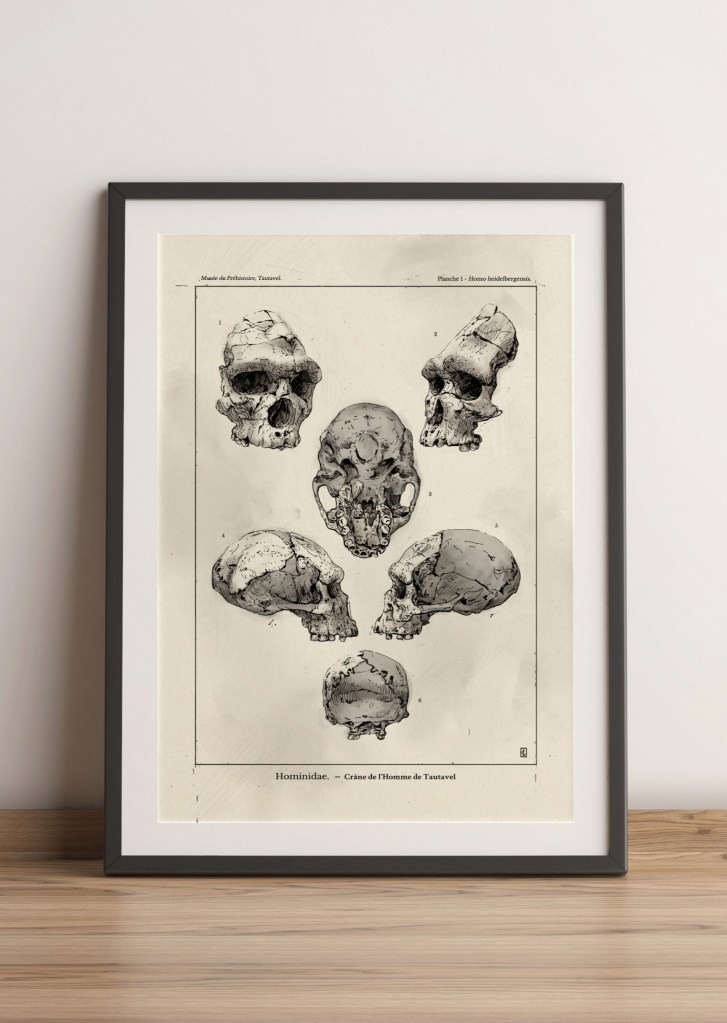 Ce projet d’illustrations scientifiques a été réalisé en collaboration avec le Musée de Préhistoire de Tautavel. Inspirée des planches scientifiques classiques, cette collection d’affiches met en lumière les vestiges archéologiques de la Caune de l’Arago, à travers des dessins détaillés de l’Homme de Tautavel et de l’ours de Deninger.