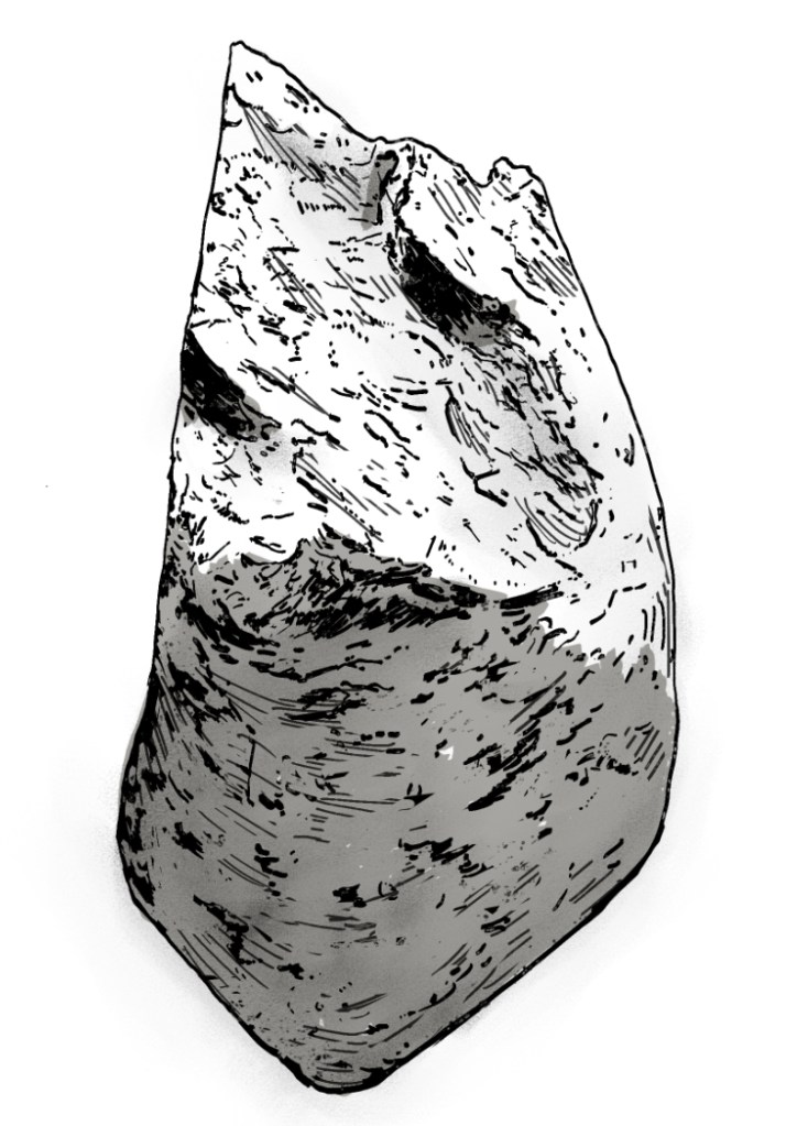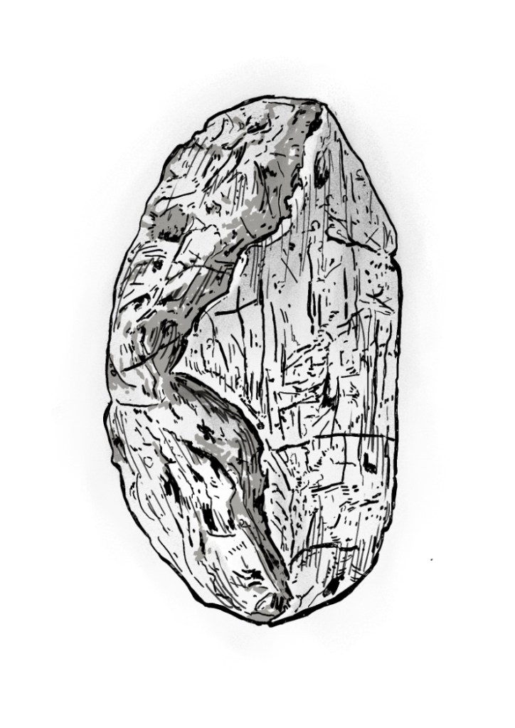 En parallèle de ce projet, j’ai également réalisé plusieurs dessins d’industries lithiques, explorant les textures, les éclats et les formes caractéristiques des outils préhistoriques. On y retrouve notamment des pièces emblématiques comme le biface Durandal.