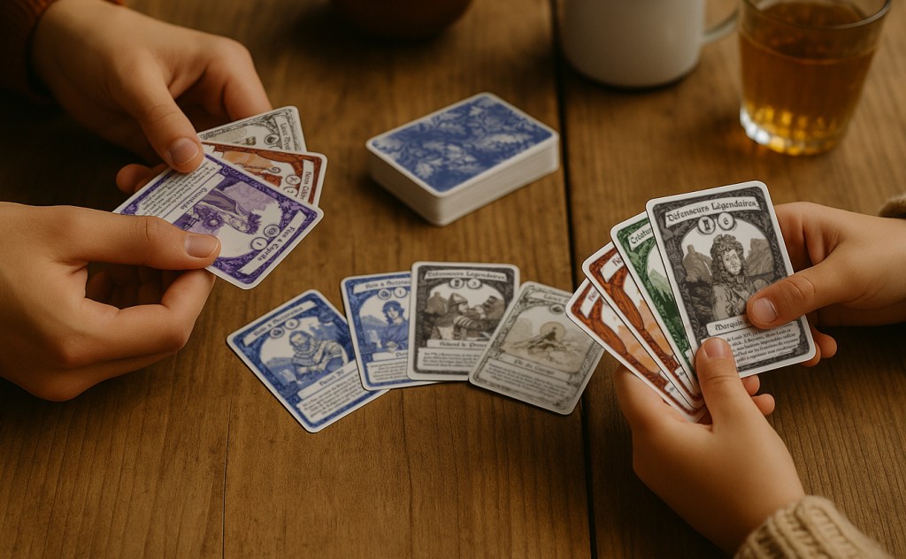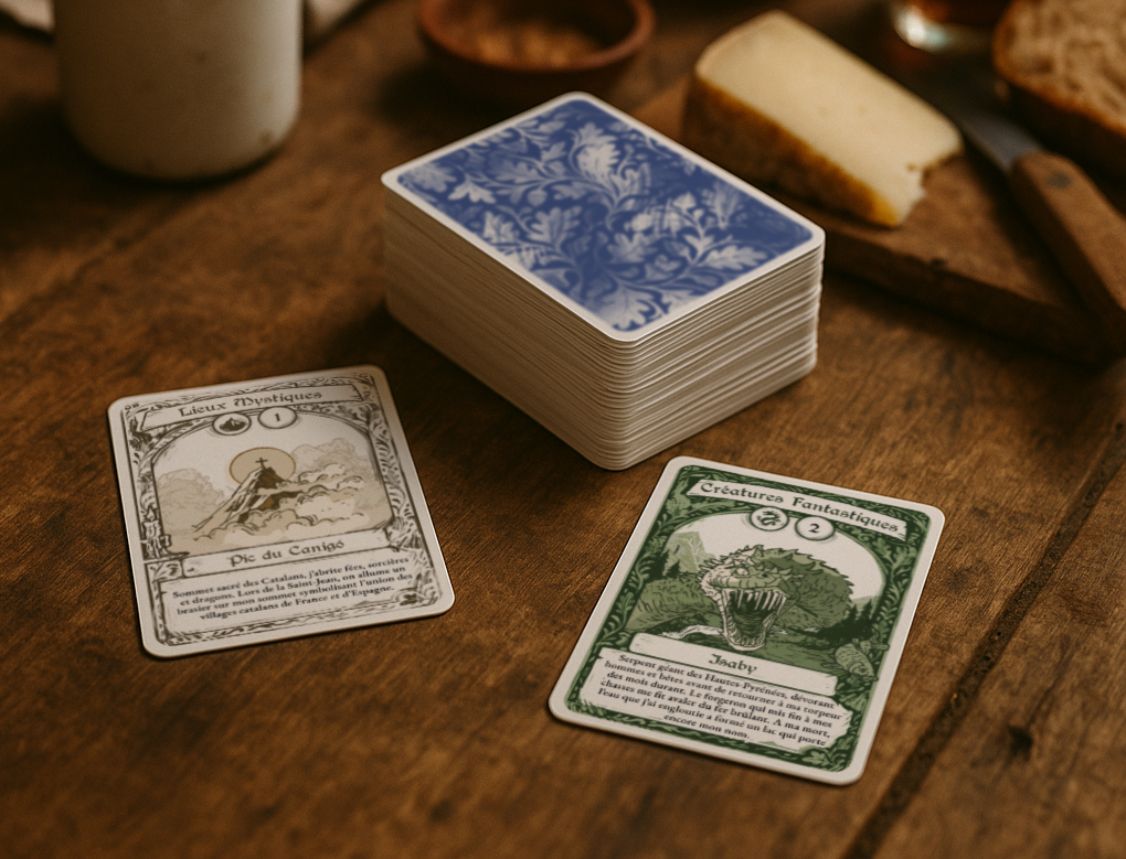 Des fées catalanes aux dragons basques, des héros du Béarn aux saints protecteurs de Bigorre, chaque carte raconte une histoire transmise de génération en génération. Le jeu traverse les Pyrénées, du Pays basque au Roussillon, en passant par le Comminges, le Conflent et la Cerdagne.